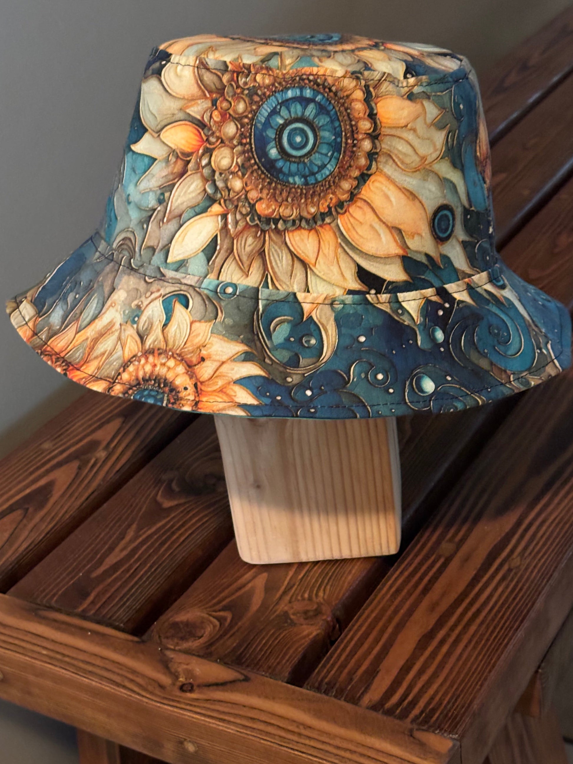 Reversible Bucket Hat with Artist Designed Large Sunflower Fabric