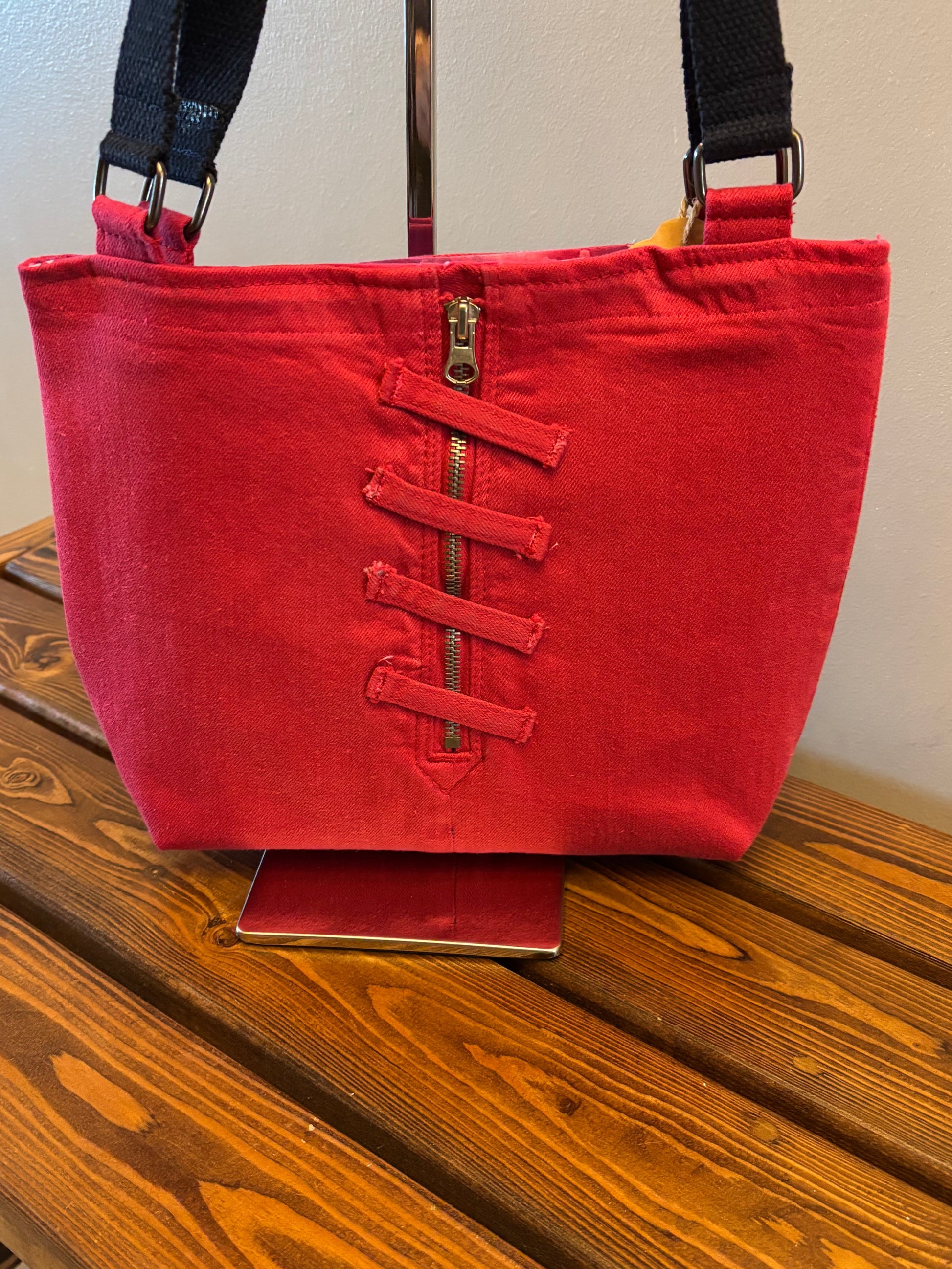Fun Red Denim Jean Patchwork Shoulder Bag